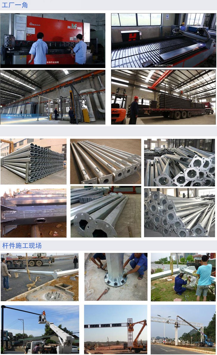 摘要:鑫光道扬州生产基地(扬州市鑫光道智能设备有限公司)是一家集设计、研发、制造、安装、服务于一体的交通器材高新企业。公司拥有先进齐全的生产设备,灯杆一次压制成型,有多种模具可选择,可压制圆 杆、方杆、锥型杆,梅花型杆、多边型杆等,也可根据客户要求订制其他特殊形状钢杆。