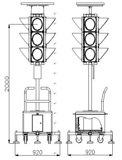 太阳能交通信号灯尺寸图:
